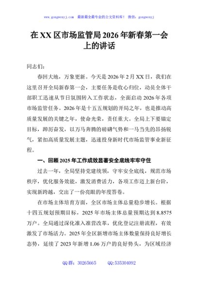 / 在XX区市场监管局2026年新春第一会上的讲话