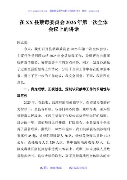 / 在XX县禁毒委员会2026年第一次全体会议上的讲话