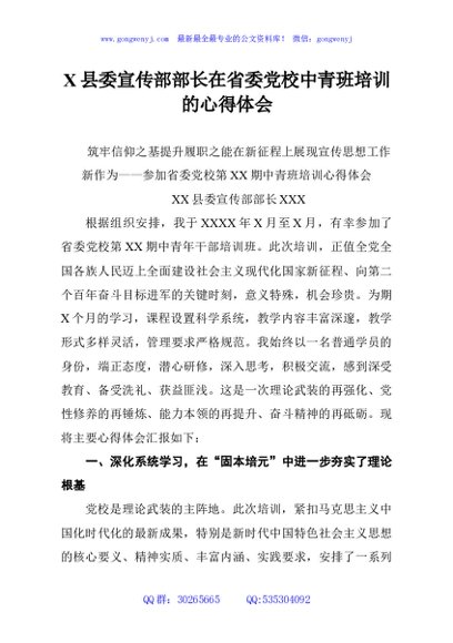 / X县委宣传部部长在省委党校中青班培训的心得体会