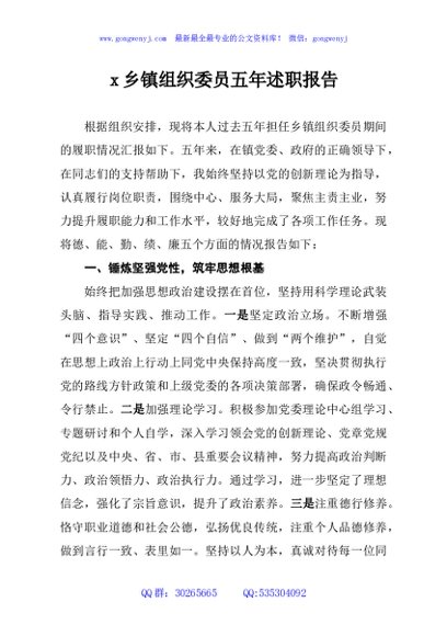 / x乡镇组织委员五年述职报告