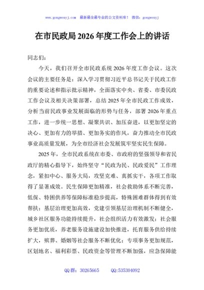 / 在市民政局2026年度工作会上的讲话