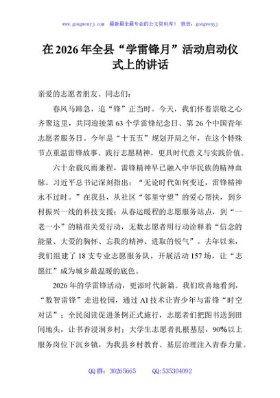 / 在2026年全县“学雷锋月”活动启动仪式上的讲话