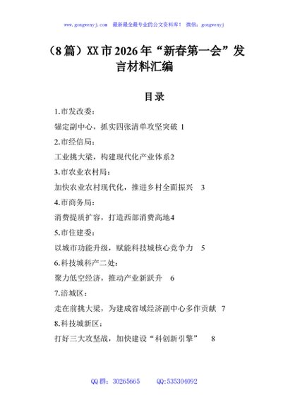 (8篇)XX市2026年“新春第一会”发言材料汇编