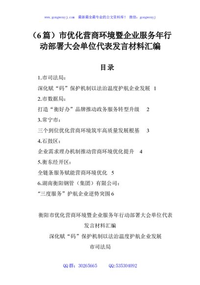 / (6篇)市优化营商环境暨企业服务年行动部署大会单位代表发言材料汇编