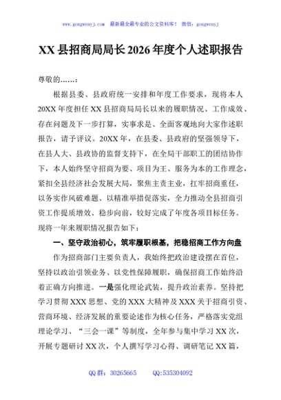 / XX县招商局局长2026年度个人述职报告