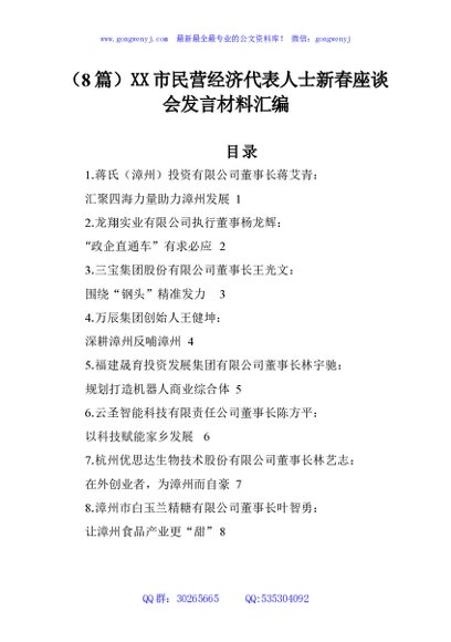 (8篇)XX市民营经济代表人士新春座谈会发言材料汇编