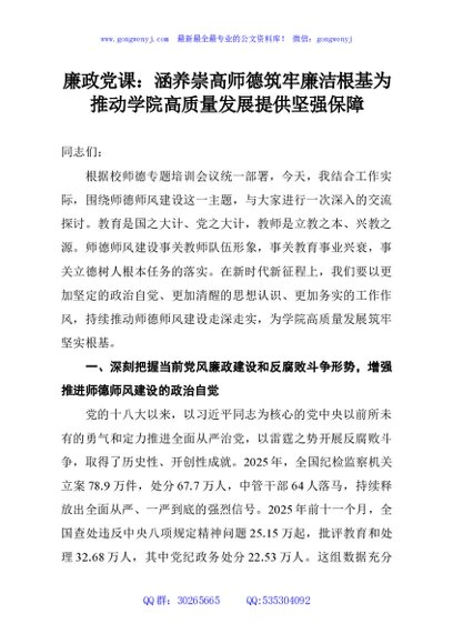 / 廉政党课:涵养崇高师德筑牢廉洁根基为推动学院高质量发展提供坚强保障