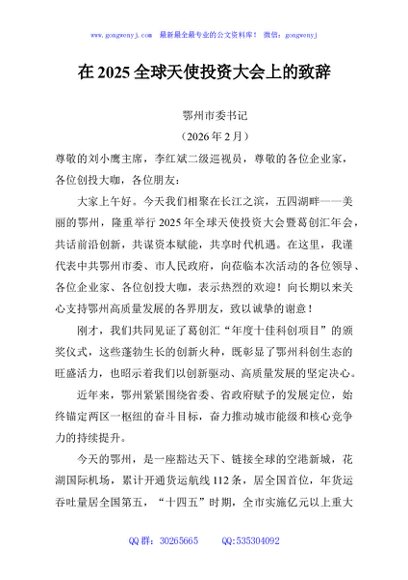 / 在2025全球天使投资大会上的致辞