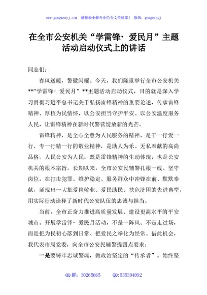 / 在全市公安机关“学雷锋 爱民月”主题活动启动仪式上的讲话