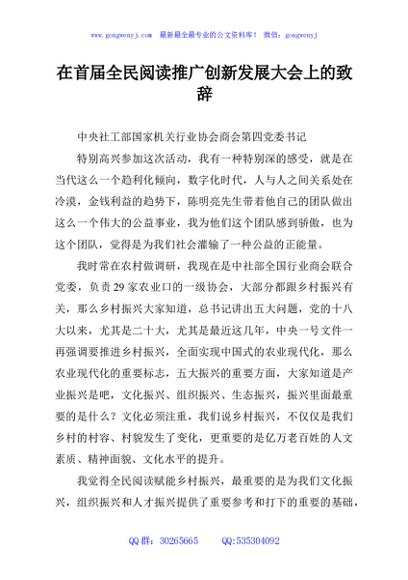 / 在首届全民阅读推广创新发展大会上的致辞