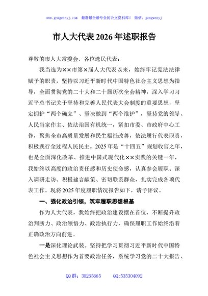 / 市人大代表2026年述职报告