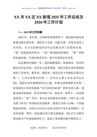 / XX市XX区XX街道2025年工作总结及2026年工作计划