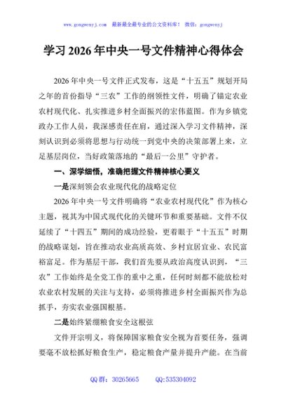 / 学习2026年中央一号文件精神心得体会