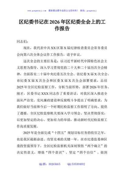 / 区纪委书记在2026年区纪委全会上的工作报告
