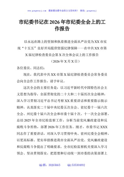 / 市纪委书记在2026年市纪委全会上的工作报告