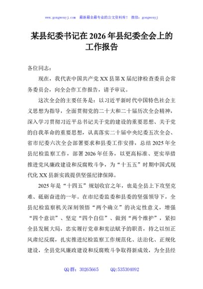 / 某县纪委书记在2026年县纪委全会上的工作报告