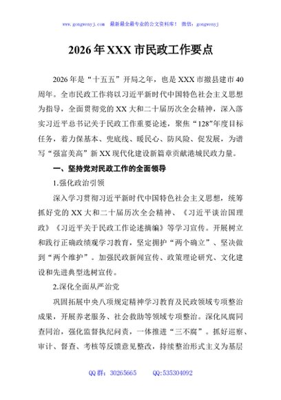 / 2026年XXX市民政工作要点