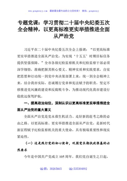 / 专题党课:学习贯彻二十届中央纪委五次全会精神,以更高标准更实举措推进全面从严治党