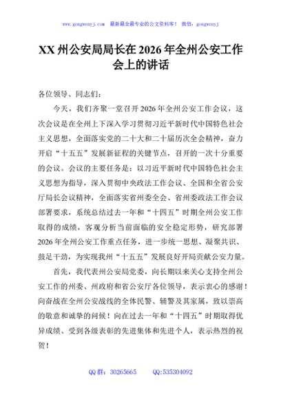 / XX州公安局局长在2026年全州公安工作会上的讲话