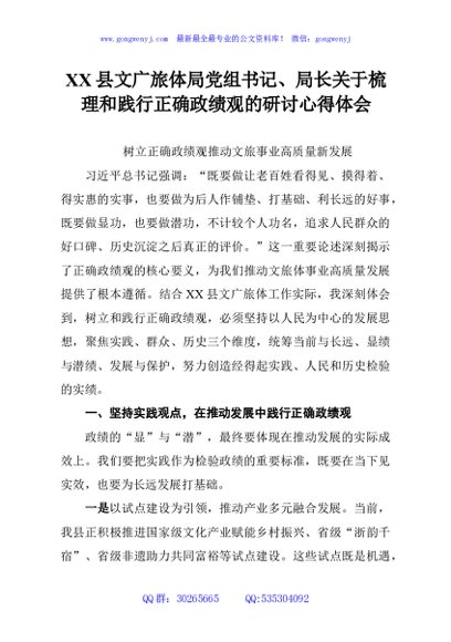 / XX县文广旅体局党组书记、局长关于梳理和践行正确政绩观的研讨心得体会