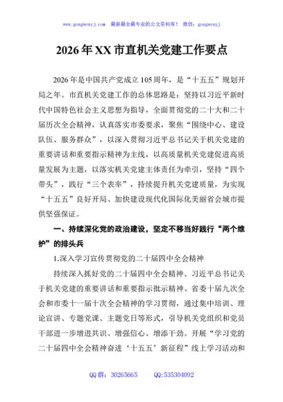 / 2026年XX市直机关党建工作要点