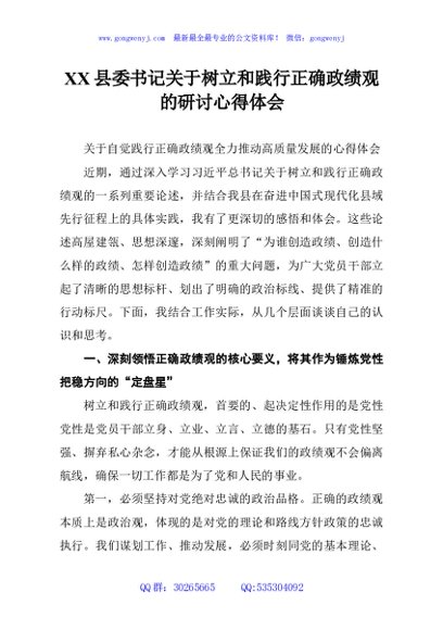 / XX县委书记关于树立和践行正确政绩观的研讨心得体会