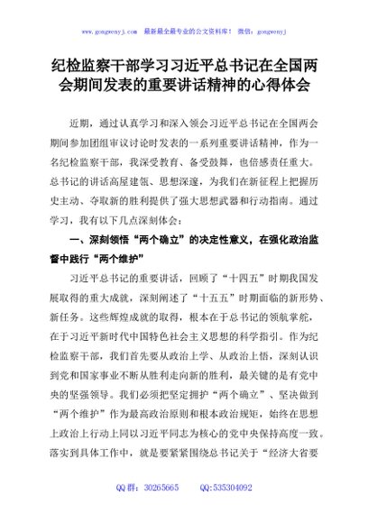 / 纪检监察干部学习习近平总书记在全国两会期间发表的重要讲话精神的心得体会
