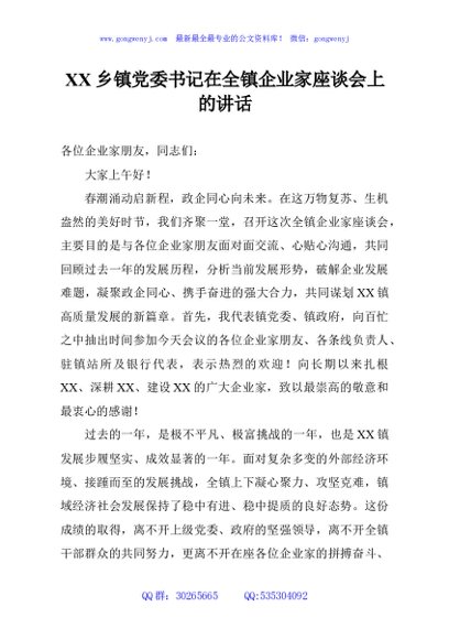 / XX乡镇党委书记在全镇企业家座谈会上的讲话