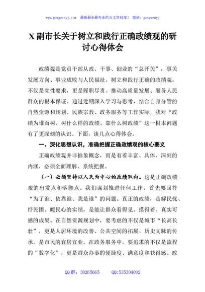 / X副市长关于树立和践行正确政绩观的研讨心得体会