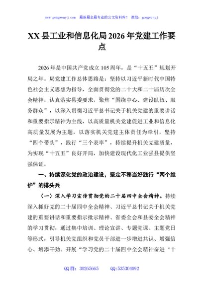 / XX县工业和信息化局2026年党建工作要点