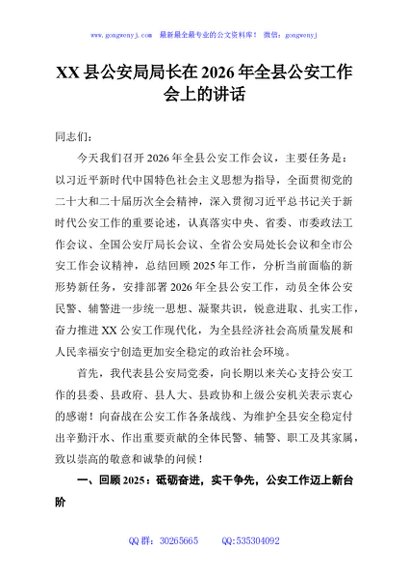 / XX县公安局局长在2026年全县公安工作会上的讲话