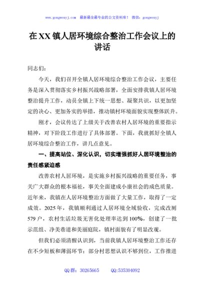 / 在XX镇人居环境综合整治工作会议上的讲话