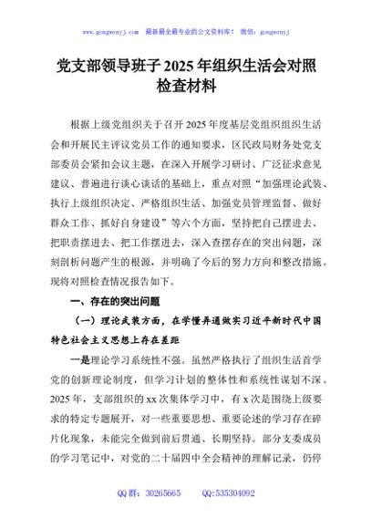 / 党支部领导班子2025年组织生活会对照检查材料