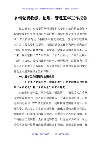 / 乡镇党费收缴、使用、管理五年工作报告