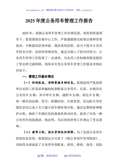 / 2025年度公务用车管理工作报告