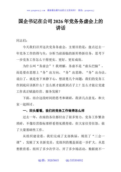 / 国企书记在公司2026年党务务虚会上的讲话