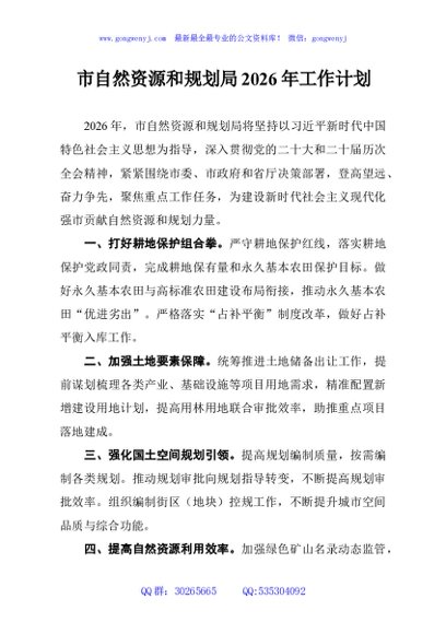 / 市自然资源和规划局2026年工作计划