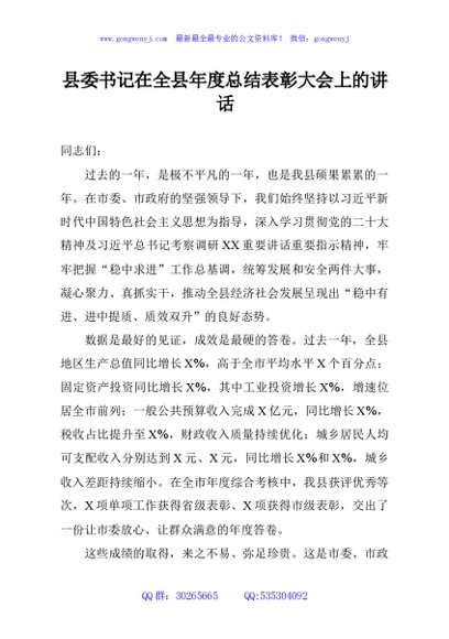 / 县委书记在全县年度总结表彰大会上的讲话