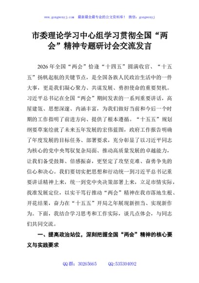 / 市委理论学习中心组学习贯彻全国“两会”精神专题研讨会交流发言
