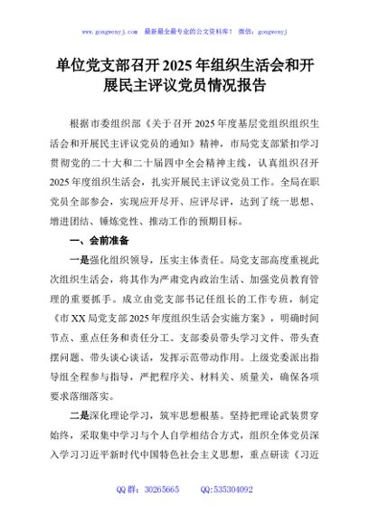 / 单位党支部召开2025年组织生活会和开展民主评议党员情况报告