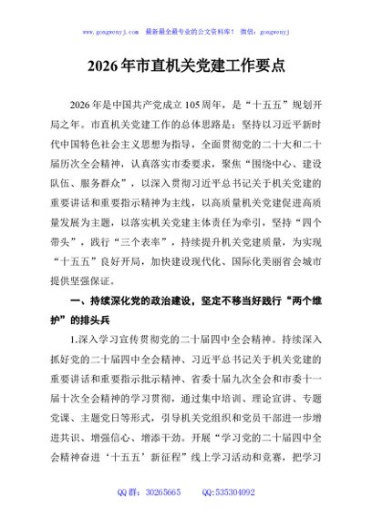/ 2026年市直机关党建工作要点