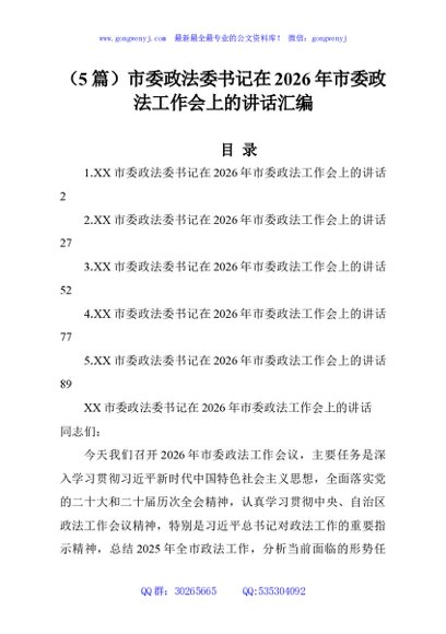 / (5篇)市委政法委书记在2026年市委政法工作会上的讲话汇编