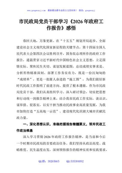 市民政局党员干部学习《2026年政府工作报告》感悟