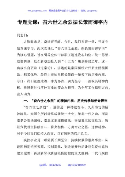 / 专题党课:奋六世之余烈振长策而御宇内