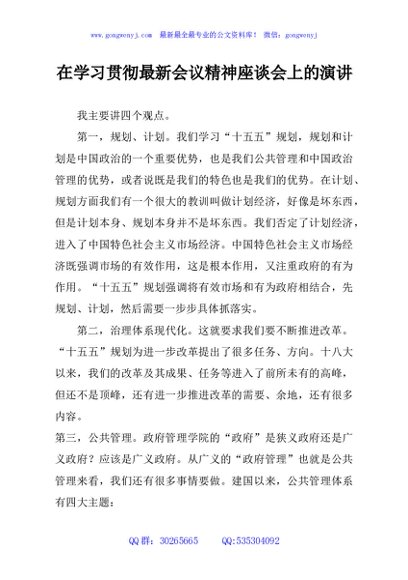 / 在学习贯彻最新会议精神座谈会上的演讲
