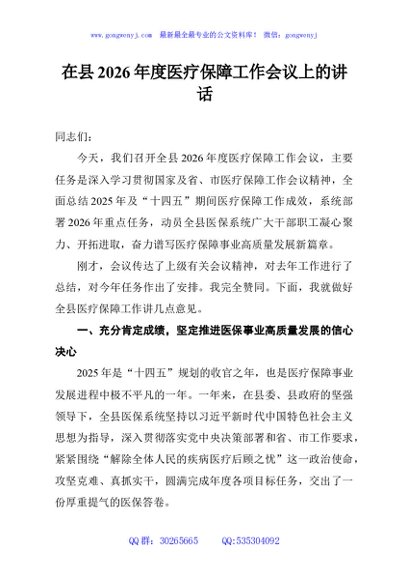 / 在县2026年度医疗保障工作会议上的讲话