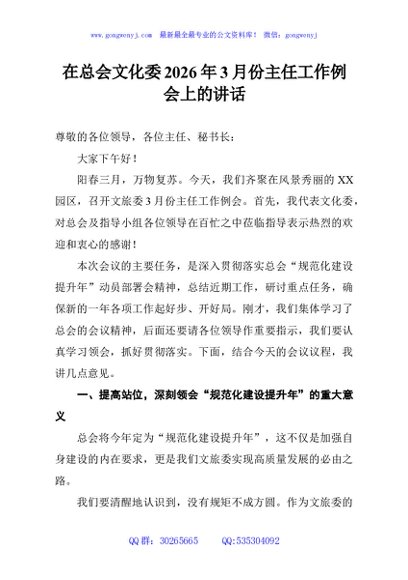 / 在总会文化委2026年3月份主任工作例会上的讲话
