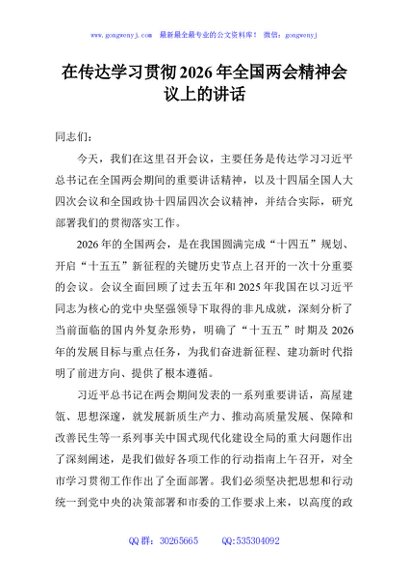 / 在传达学习贯彻2026年全国两会精神会议上的讲话