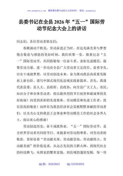 / 县委书记在全县2026年“五一”国际劳动节纪念大会上的讲话
