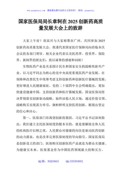 / 国家医保局局长章轲在2025创新药高质量发展大会上的致辞